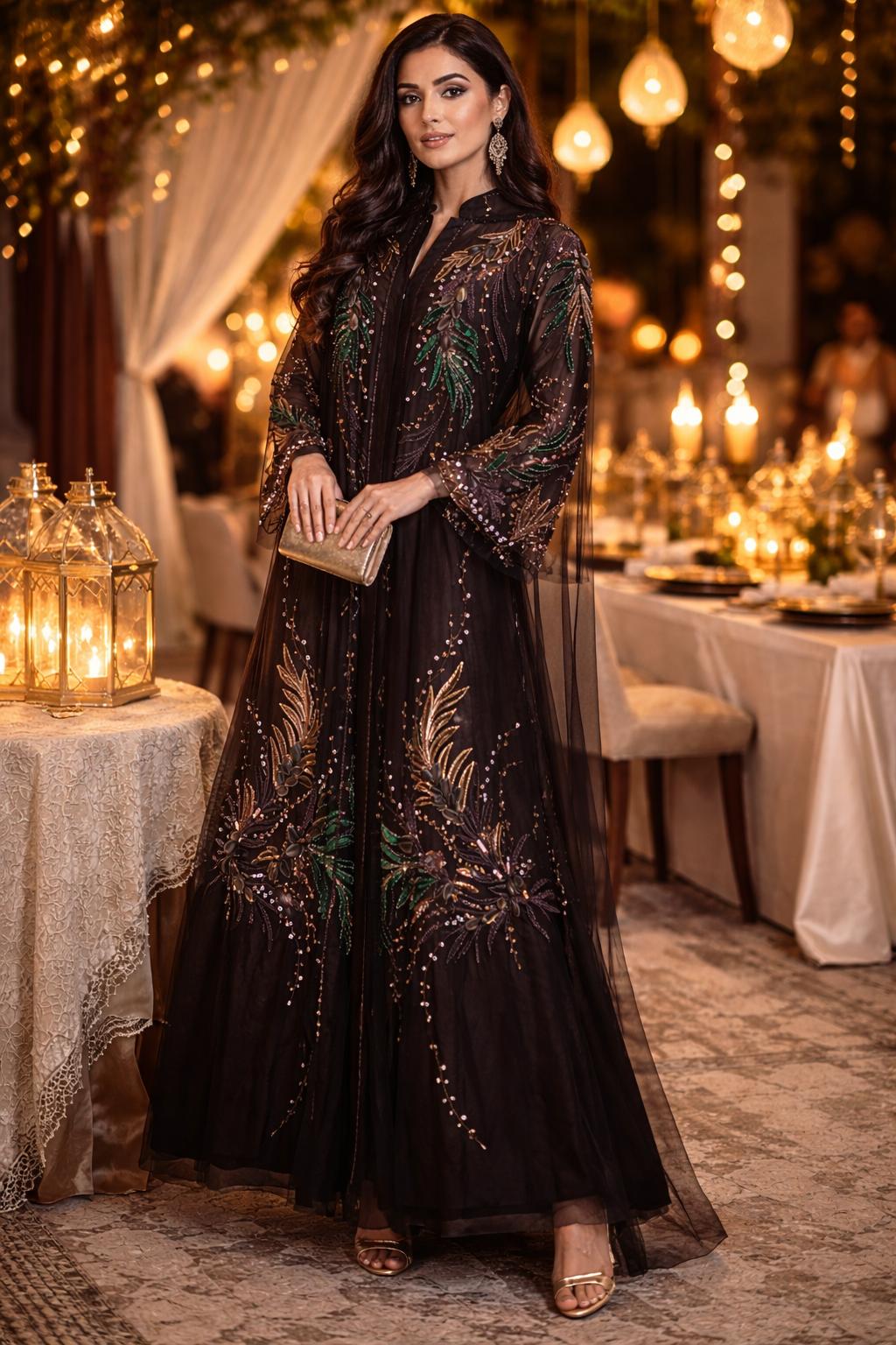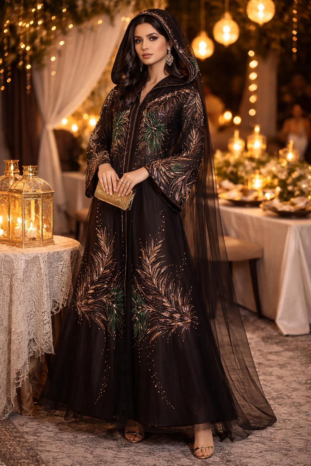 A vision of elegance ✨Deep emerald tones, intricate embroidery, and a flowing hooded silhouette—this abaya is where luxury meets timeless grace. Perfect for evenings that deserve a statement look 🤍