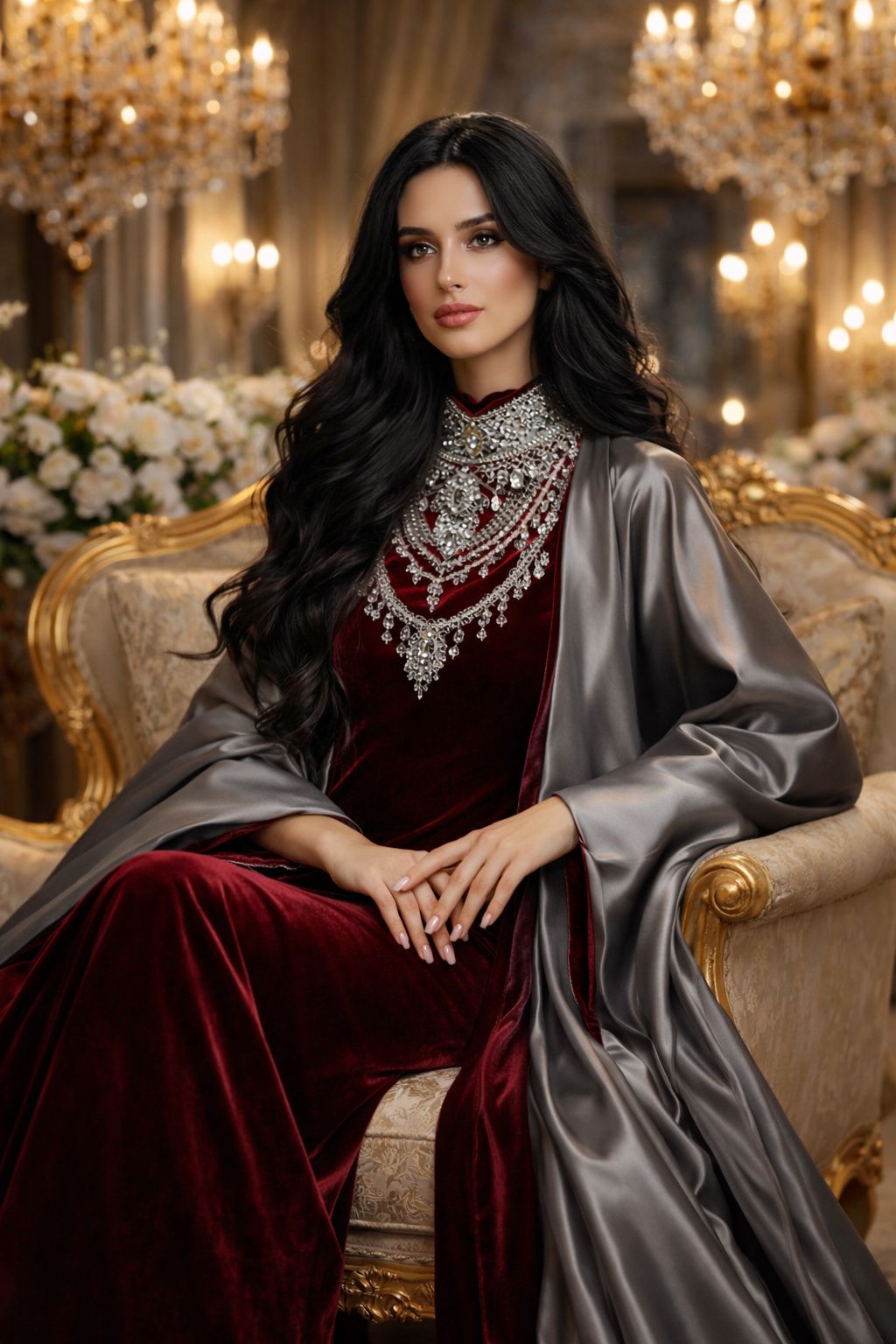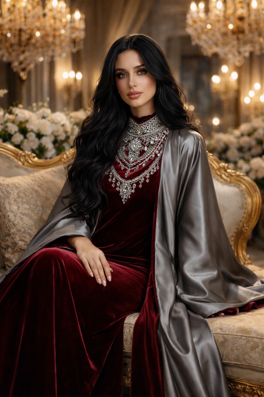 Luxurious elegance in a deep burgundy tone, designed with a sleek silhouette and a graceful drape for a timeless, sophisticated look.✨