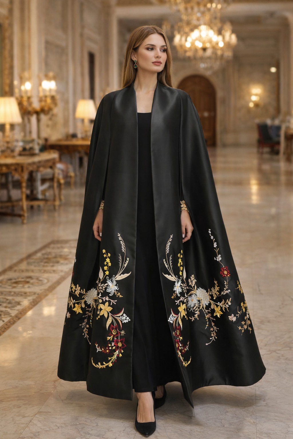 A statement black cape abaya with timeless embroidery 🤍
